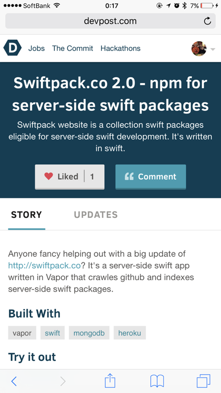 直接会って話を聞いていると、Petrさん、すでにVaporでSwiftのパッケージをまとめるサイトを運営しているそうなのです。