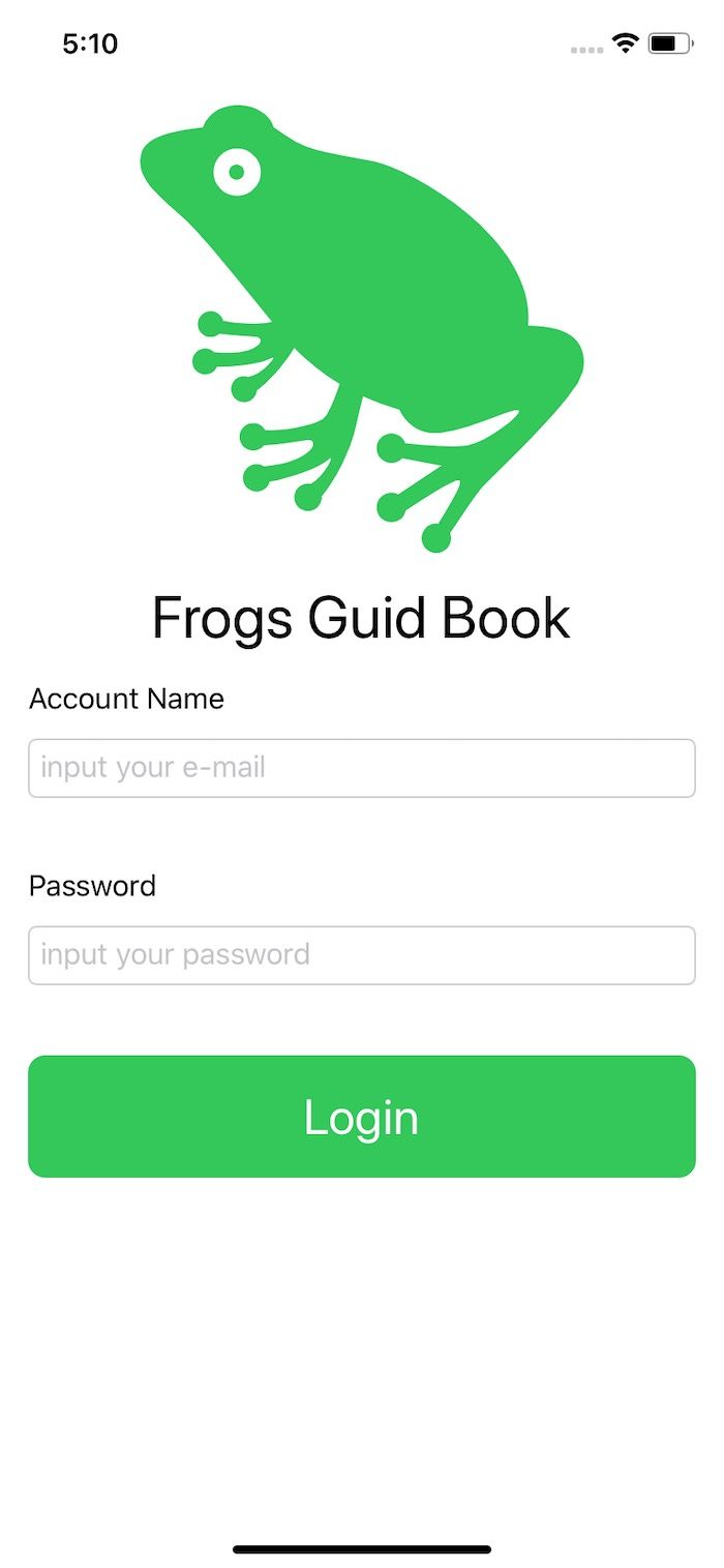 カエル図鑑は会員登録が必要なアプリの想定です。
