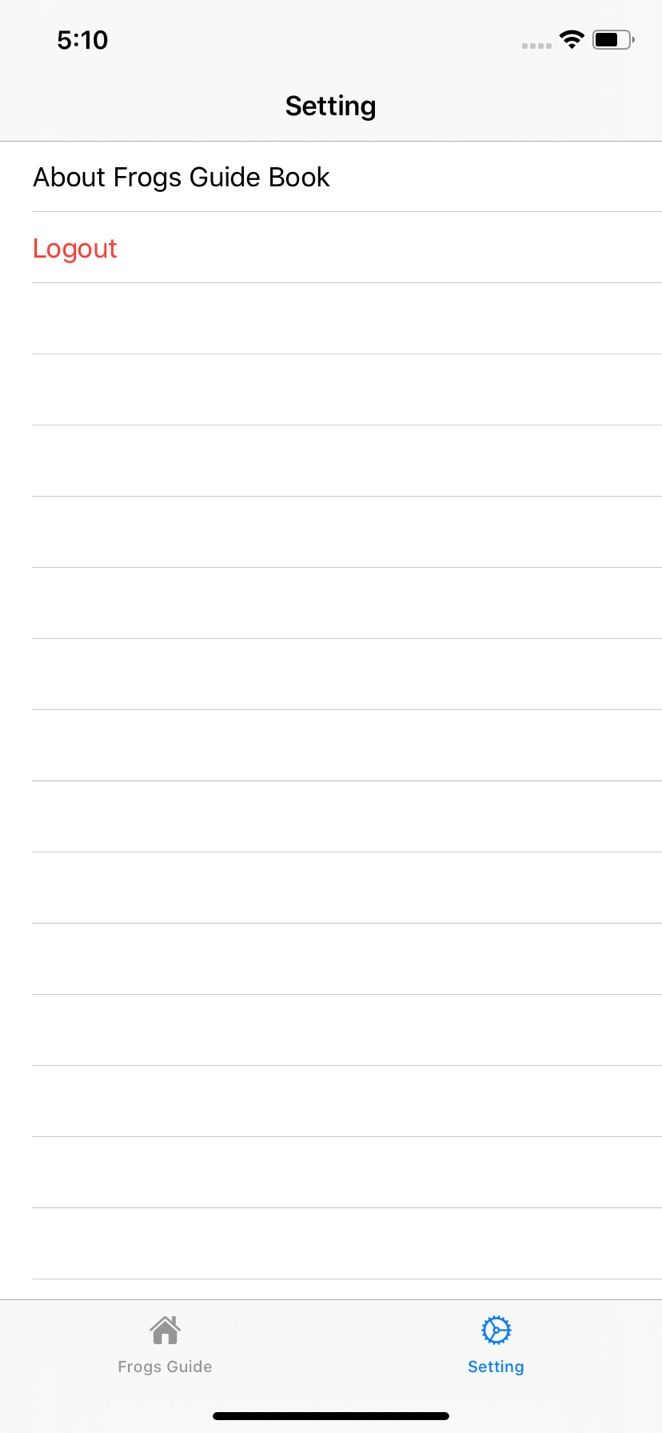 - Setting画面: AboutページとしてアプリのGitHubページをモーダルで表示したり、Logout機能があります。LogoutするとLogin画面へ遷移します。