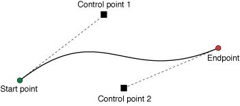 Endpointの座標とControl point1, 2を使って曲線を作成します。