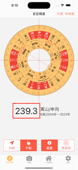 玄空飛星風水は端末の方位磁石の値を読み取り、風水を判定してくれるアプリです。